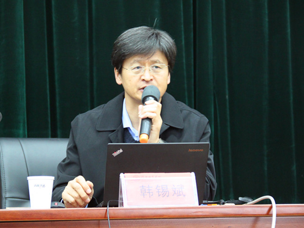 图为韩锡斌作学术报告。记者 周洪波 摄