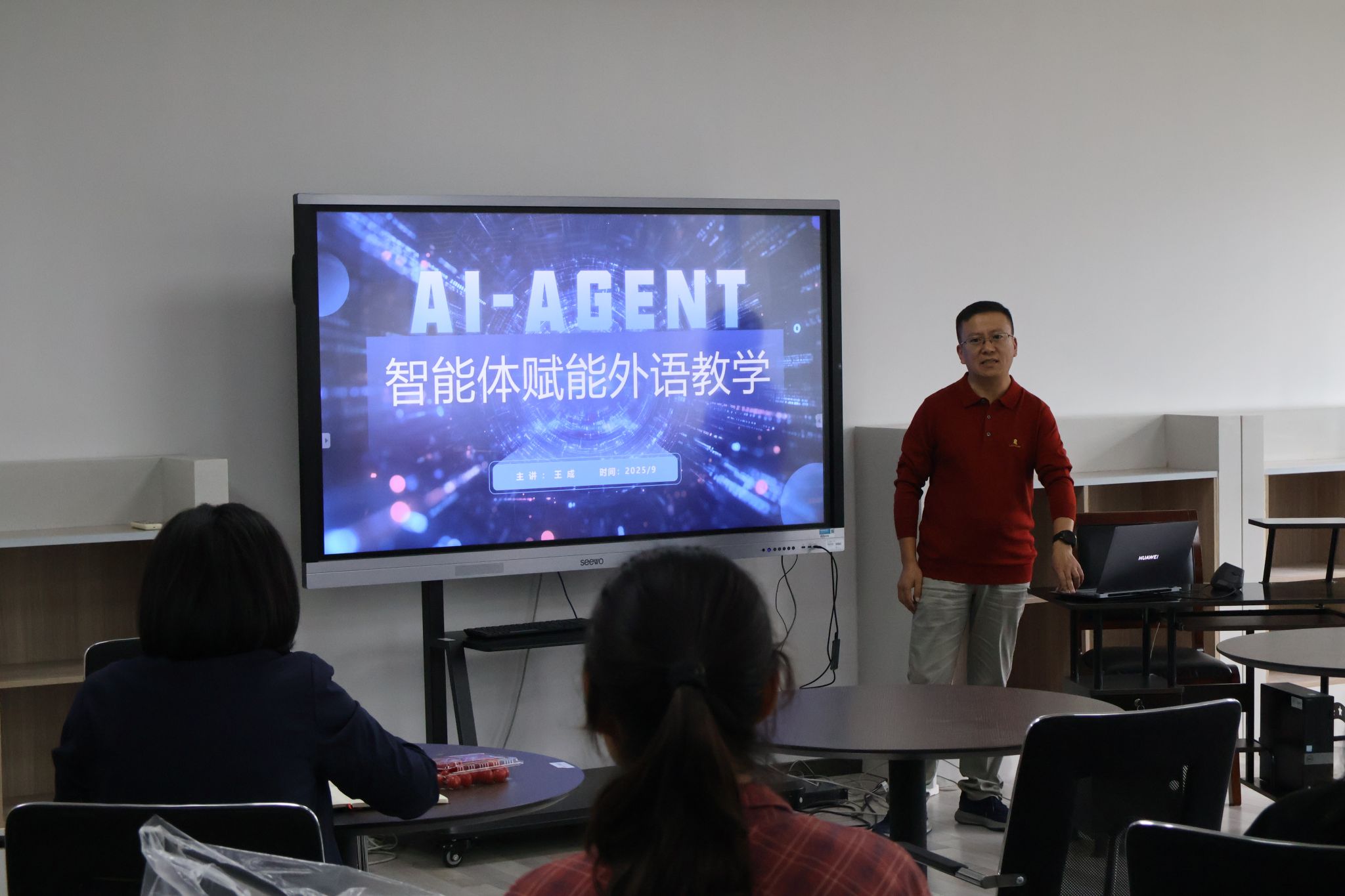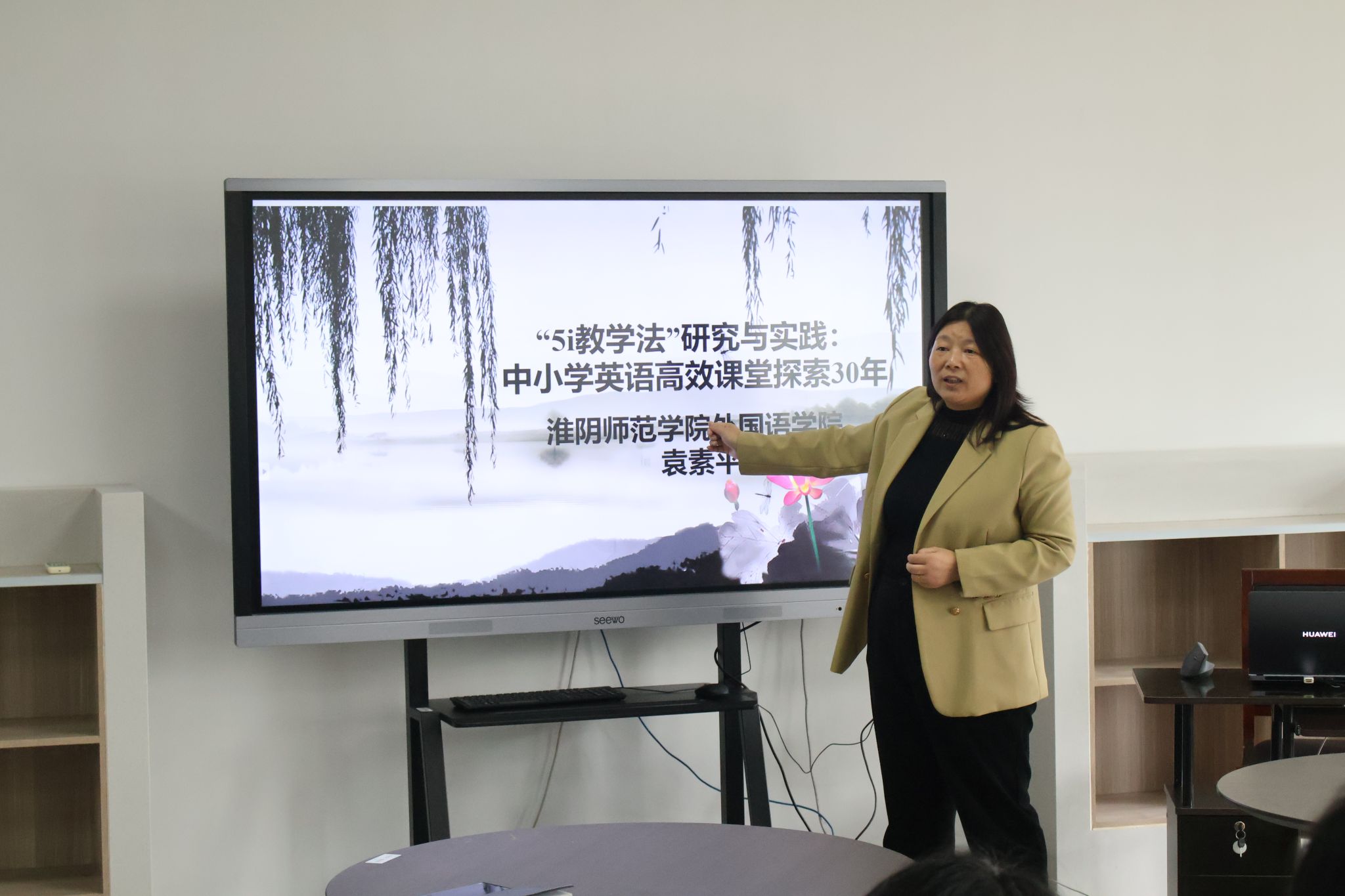 为深化英语课堂教学改革,落实课程育人核心目标,由淮阴师范学院教务处主办、外国语学院协办的【师说新语】专题活动于2025年10月16日在长江路校区弘文楼1-217正式开展。该活动由外国语学院副院长王玉山主持,“5i英语教学法”创始人袁素平及外语实验教学中心主任王成主讲。