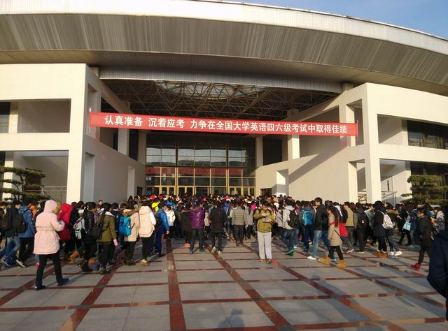 图为全国大学英语四六级考试考生进场 记者 葛洁琨 摄