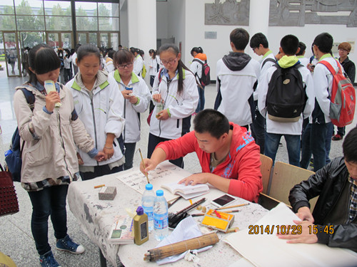 参加此次活动的选手主要由历届书写比赛获奖选手和美术学院书法专业学生组成。书写以软笔书法为载体,以规范汉字为标准,以弘扬中国优秀的传统文化为主题。活动现场,创作选手之间互相交流、学习,围观同学纷纷参观、讨字。优秀作品在现场展出的同时?还将在文学院橱窗展示,以供广大同学观赏。